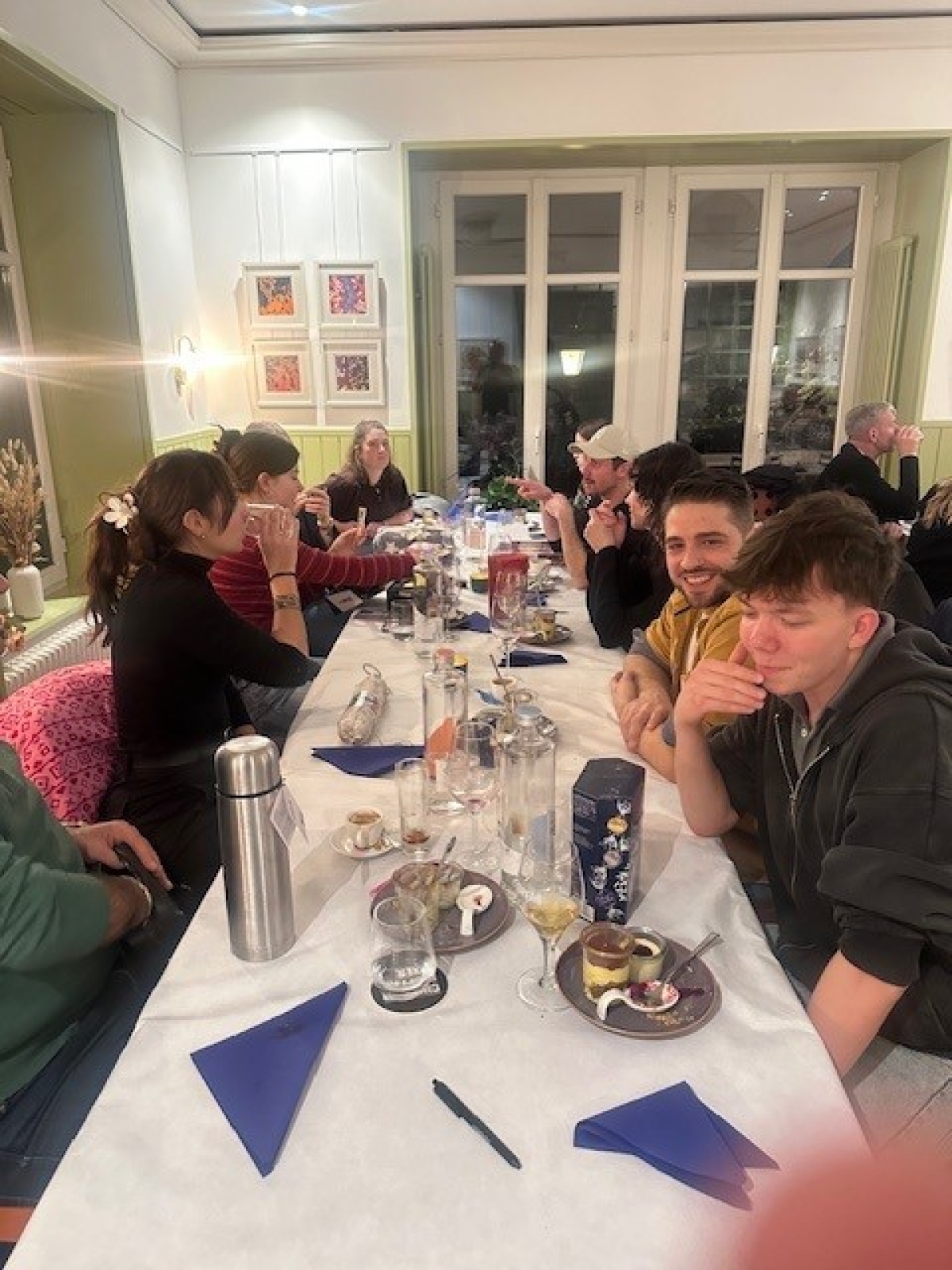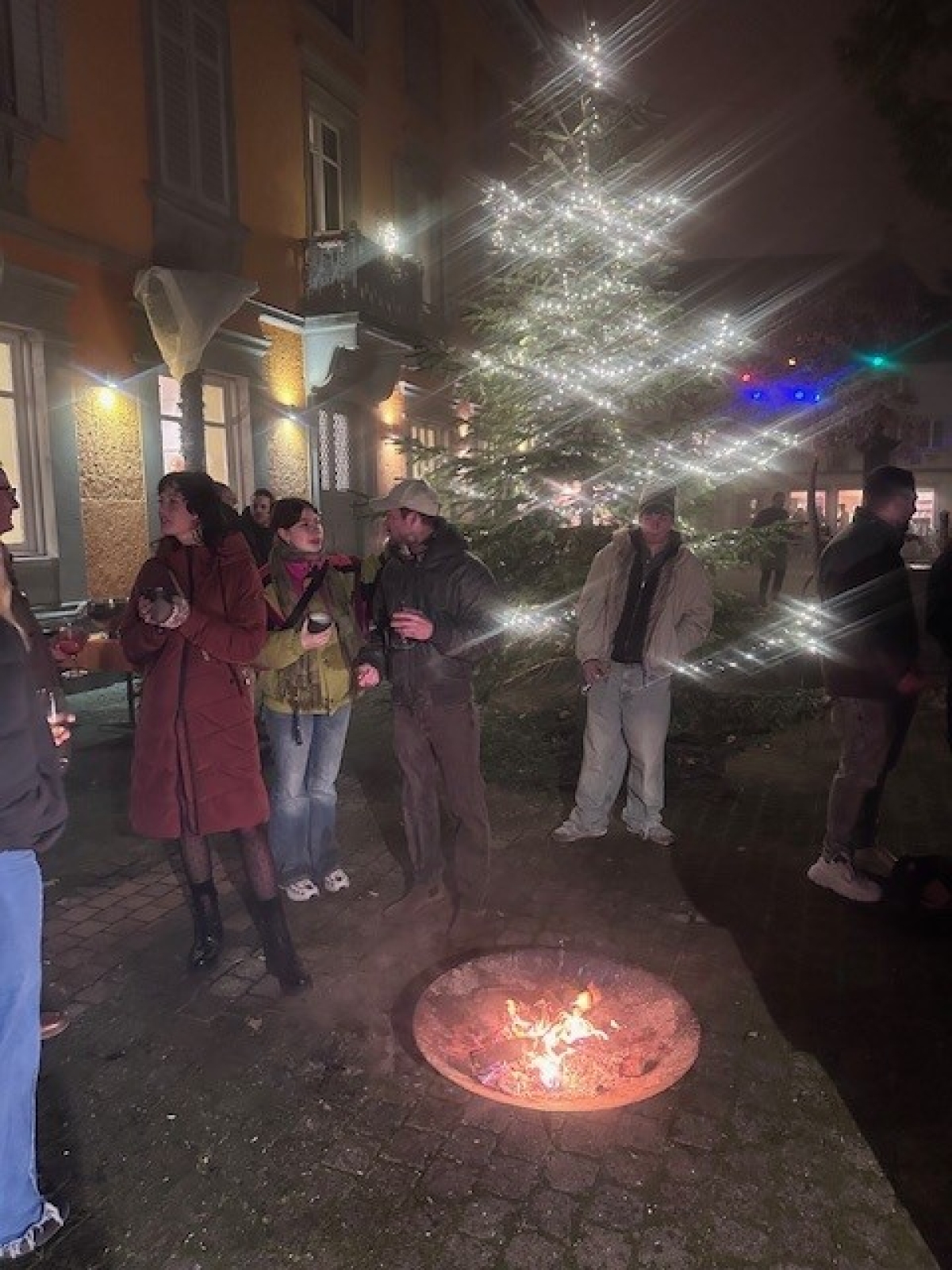 Wir trafen uns um 18.30 Uhr draussen an der Feuerschale des Restaurants Concordia. Rund um das Feuer standen kleine Stehtische mit feine Häppchen für uns bereit und auch unsere pensionierten Mitarbeitenden durften wir begrüssen. Diese Verbundenheit mit dem Maler fürs Leben, auch Jahrzente übers Pensionsalter hinaus ist besonder schön.
