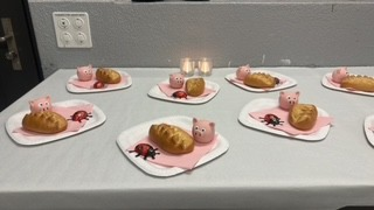 Andreas Both konnte es kaum erwarten, bis alle Ihr ganz persönliches "Schweinchen" in den Händen hielten und dieses mit sanftem Druck zum Quitschen brachten....